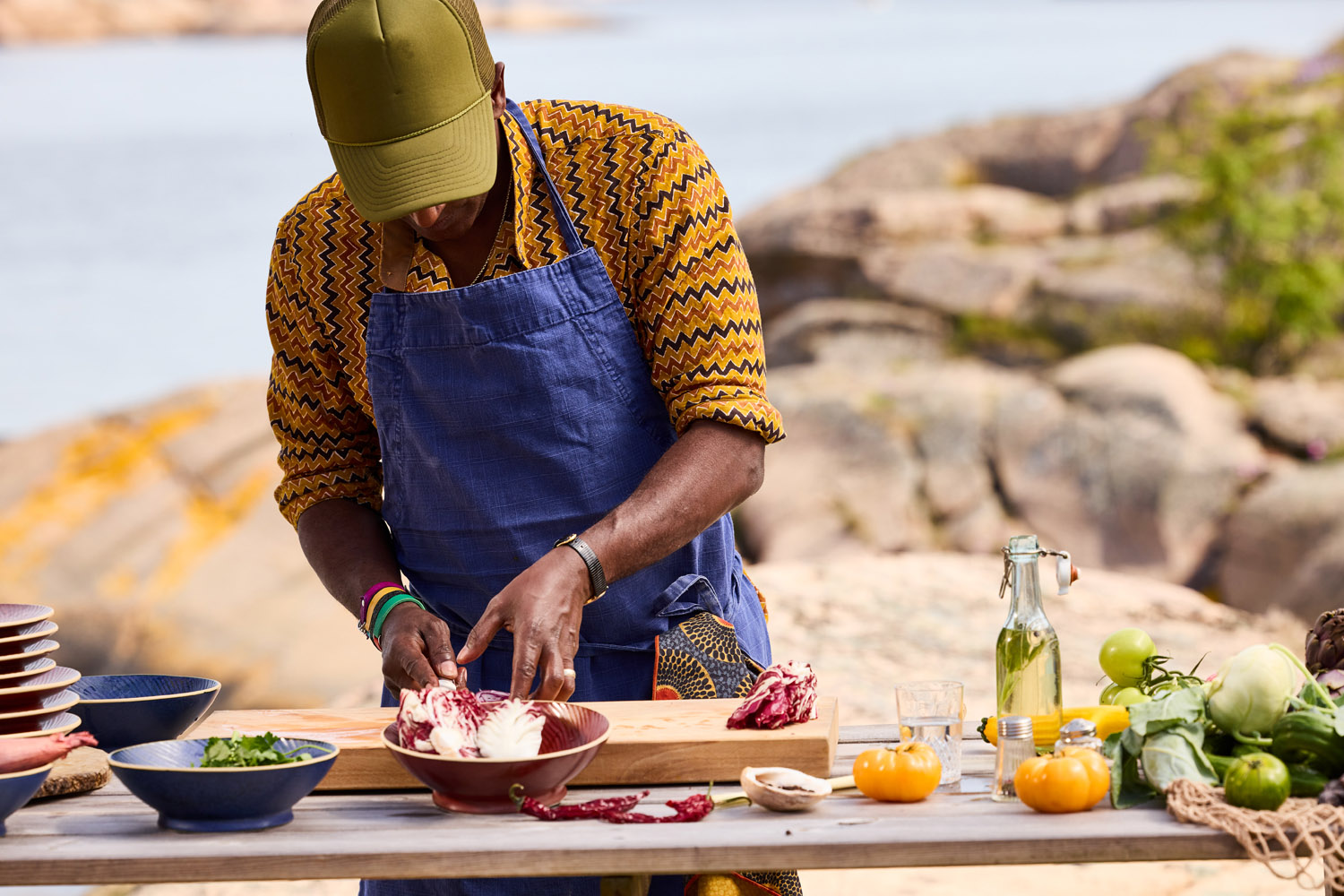 Concept and art direction for a West Elm product collaboration with celebrity chef Marcus Samuelsson. Photographed in the rural Swedish fishing village where he was raised, the colorful setting provided the perfect backdrop for Marcus’s collection of furniture and tableware. These images lived alongside photography from an additional in-studio shoot, photographed in Brooklyn.